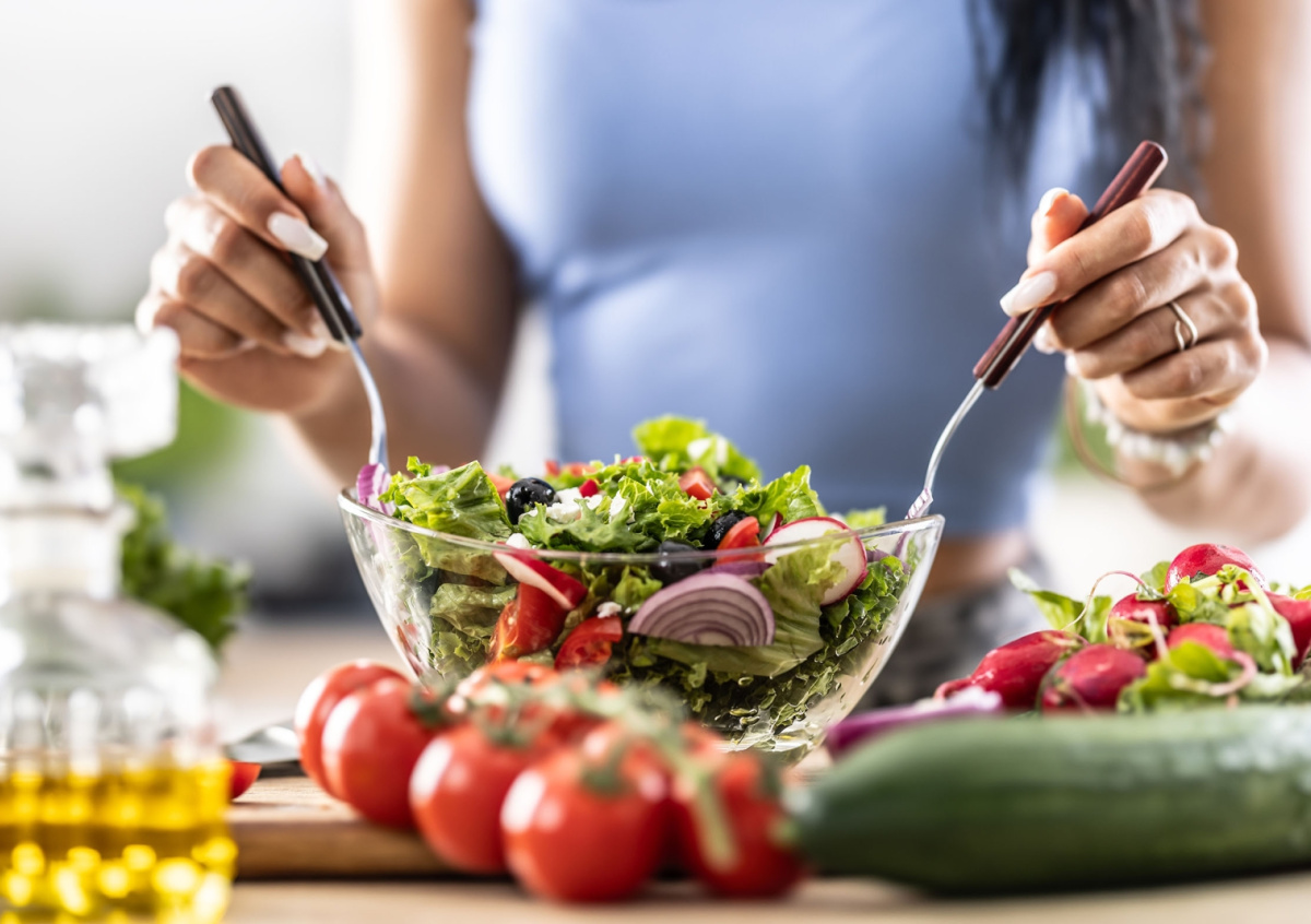 Эксперт утверждает, что для первого приема пищи подойдут фруктовые или овощные салаты, а также орехи. Затем в течение дня следует включить в рацион цельнозерновой хлеб и бобовые.